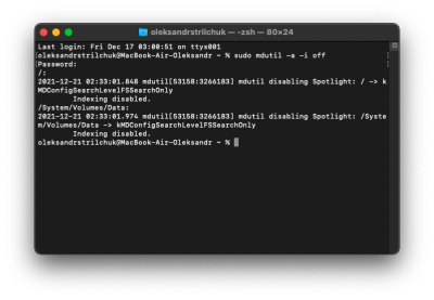 Если данных манипуляций было не достаточно, можно отключить индексацию выполнив в терминале команду